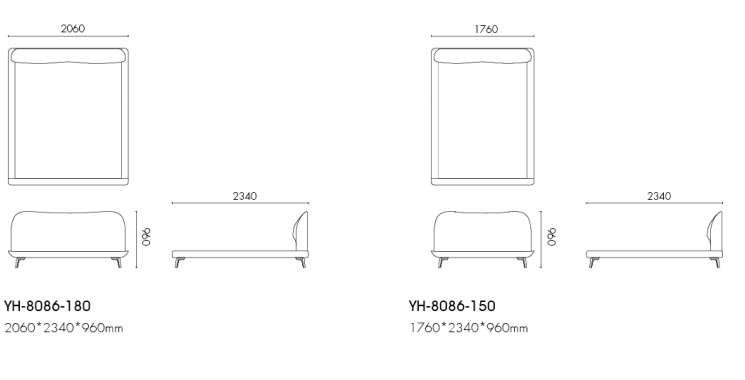 荷,也称莲,素来为人们所钟爱,著名的《爱莲说》,歌颂了它高洁的品格和洒脱的情怀。设计灵感来 自于优美舒展的荷叶形态。床背的曲线和起伏符合人体工程学。床的底座结合精巧的金属腿,有悬浮的 感觉,柔和飘逸的造型与睡眠和梦幻融为一体。